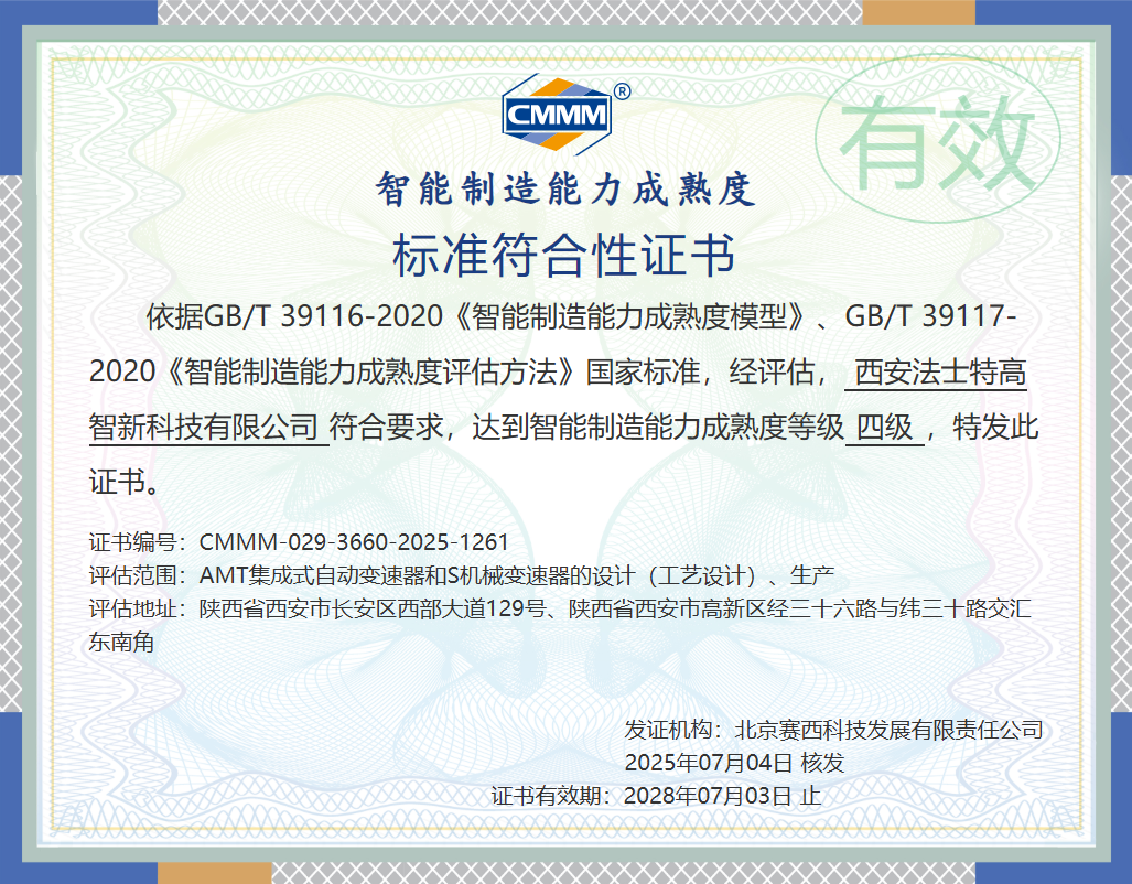 法士特通過智能制造能力成熟度四級認證